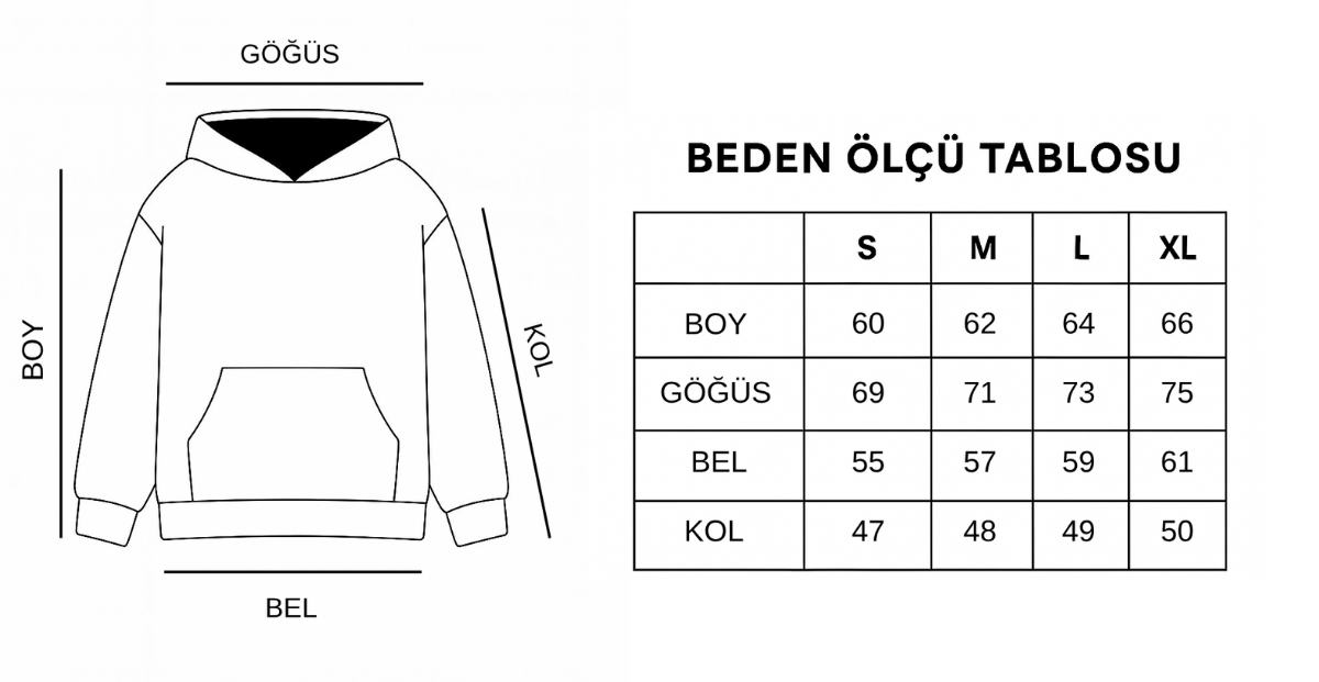 Kendi bedeninizi veya kendi bedeninizden bir beden küçük öneriyoruz, kalıplar oversizedır.